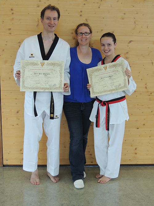Zwei Prüflinge – ein gemeinsames Ziel: Verena und Peter reichten ihre bislang abolvierten Poom- bzw. Dan-Prüfungen nicht aus und so packte beide der Ehrgeiz, sich den nächsten Gürtel zu erarbeiten. Mit viel Einsatz im Training bereiteten sich beide gut vor und zeigten auch am Prüfungstag, dass sie alle geforderten Disziplinen beherrschen. Herzlichen Glückwunsch an Verena zum zweiten Poom und Peter zum vierten Dan!