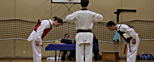 Am 11.12.2010 um 18 Uhr war es soweit: ca 30 Taekwondo’ler jeden Alters warteten aufgeregt auf ihren Auftritt vor dem Prüfer. Nach 3 Stunden mit Praxis und Theorie war die Prüfung beendet und der Prüfer Loris Landi vollauf zufrieden mit der Leistung der Prüflinge. Den beiden Prüflingen auf den ersten Kup hätte er sogar bereits den ersten Dan verliehen wenn er gekonnt hätte. So konnten alle Teilnehmer mit Stolz ihre Urkunden in Empfang nehmen und sich nun auf die neuen Aufgaben vorbereiten.