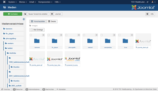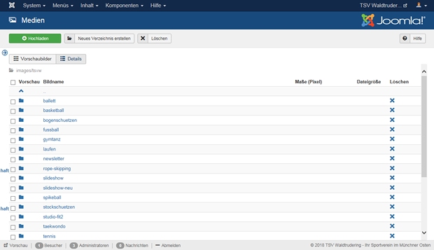 Wenn ich in der Joomla Medienverwaltung Bilder etc. außerhalb der Verzeichnisse „phocagallery“ und „tsvw“ finde, dann entferne ich sie routinemäßig, da ich dann davon ausgehe, dass sie jemand dort versehentlich abgelegt hat und dann vergessen hat. sie wieder zu löschen.