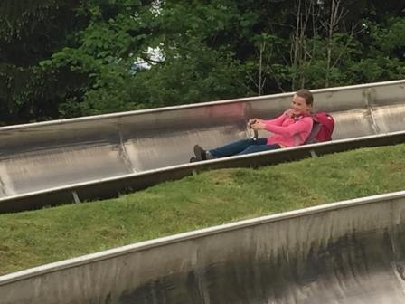 An das Sonntagsfrühstück schloss sich die Hausreinigung an. Alle packten mit an und so konnten wir schon bald zur letzten Station starten: Sommerrodelbahn! Die erste Abfahrt musste erarbeitet werden und so machten sich 37 Bergsteiger auf den Weg. Die Abfahrt war ein Abenteuer: zwei Bahnen nebeneinander, sorgten neben jeder Menge Spaß für spannende Wettrennen. Die zweite Runde wurde dann per Sessellift angegangen, der wachsende Mut sorgte für noch rasantere Abfahrten.