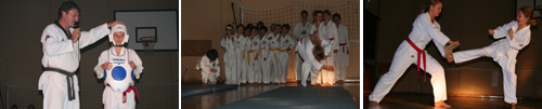Freitag Abend um 19.45 Uhr: die Zuschauer strömen in die Halle des TSV Waldtrudering. Gespannt sitzen die 50 Sportler, die an der Vorführung teilnehmen leise in der abgedunkelten Halle und warten auf ihr Startsignal. Als auch die letzten der ca. 150 Zuschauer ihren Platz gefunden haben, geht es los: mit einer bunten Mischung aus Anfängern, Fortgeschrittenen, Kindern und Erwachsenen präsentieren sich die Teilnehmer dem Publikum und vertreten damit die gesamte Abteilung mit ihren über 250 Mitgliedern. Der äußerst kurzweilige Abend führte den Zuschauer durch die gesamte Welt des Taekwondo-Sports. Vom Formenlaufen, kontaktlosen Ein-Schritt-Kampf und Pratzenkicken bis hin zu Vollkontaktwettkampf mit Schutzausrüstung, Selbstverteidigung, Fallschule und den Bruchtests waren alle Disziplinen vertreten und jeder konnte sich ein Bild machen, wie vielseitig die Sportart Taekwondo ist.