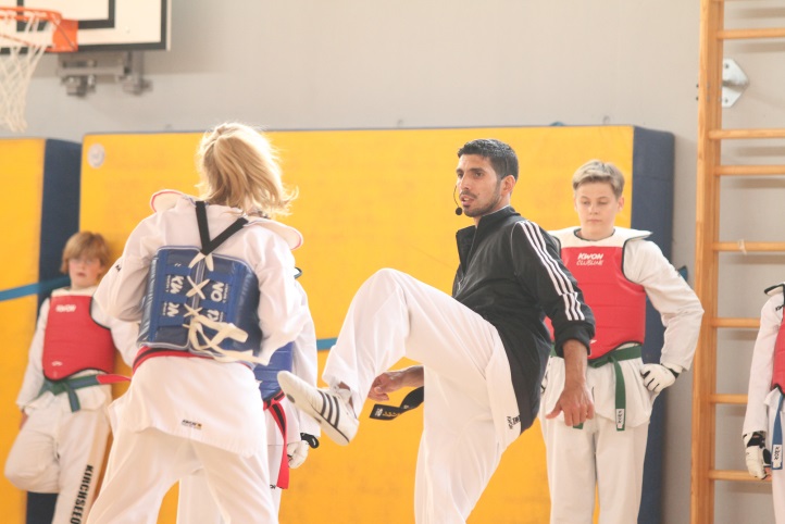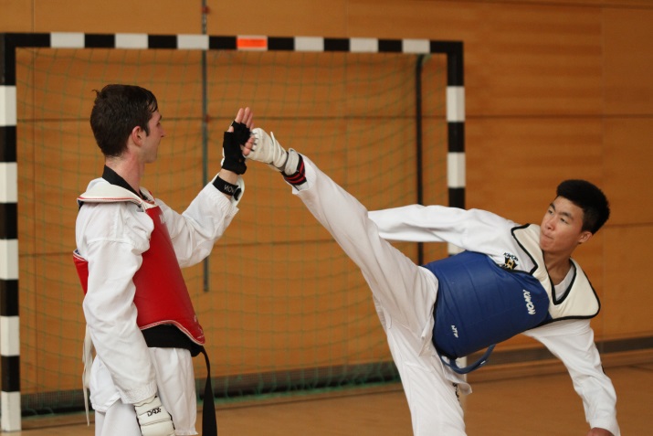 Zunächst wurden Wettkampf-Basics trainiert. Dieses prüfungsorientierte Training ermöglichte allen Sportlern eine Teilnahme an diesem Lehrgangsteil. Speziell für die Dan- und höheren Kupprüfungen wurden Technikabfolgen in der Prüfungsdisziplin Wettkampf eingeübt. Die zweite Trainingseinheit war den aktiven Turnierstartern gewidmet. Es wurden Techniken eingeübt, welche die Zielgenauigkeit und Treffsicherheit stärken können. Zum Abschluss gab es die Gelegenheit mit elektronischen Westen zu Kämpfen.
